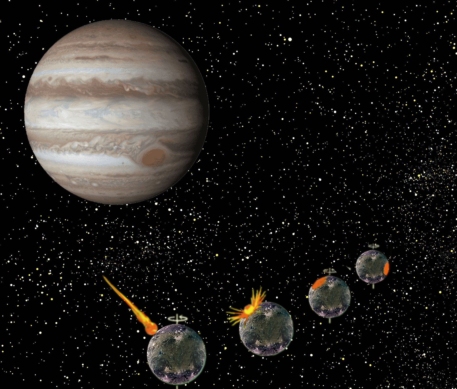 °¡´Ï¸Þµ¥ÀÇ µÞÂÊ À̹ÌÁö¸¦ °¥¸±·¹¿À ¿ìÁÖ¼±ÀÌ ¼±¸íÇÏ°Ô ÃÔ¿µÇß´Ù.[40] Ÿ½Ã¸ÞÅÒ ºÐȱ¸ÀÇ ºûÀÌ ¿À¸¥ÂÊ ¾Æ·¡¿¡ ÀÖ°í, ±×¸®°í ¿À¸¥ÂÊ À§ Ç㽬ÇÁ Ãæµ¹±¸ÀÇ Å« ºÐÃâ¹° Ç¥¸éÀÌ ÀÖ´Ù. ¾îµÎ¿î ´ÏÄݽ¼ Áö¿ªÀÇ ÀϺδ ¿À¸¥ÂÊ ¾Æ·¡¿¡ Ç¥½ÃµÇ°í, Çϸ£ÆäÁö¾Æ Ȩ¿¡ ÀÇÇØ ¿À¸¥ÂÊ »ó´Ü¿¡ °æ°è°¡ ÀÖ´Ù.